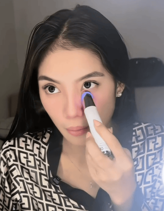 Luz Vermelha: Aquece suavemente a 42 °C, estimulando o colágeno e suavizando linhas finas e pés de galinha.